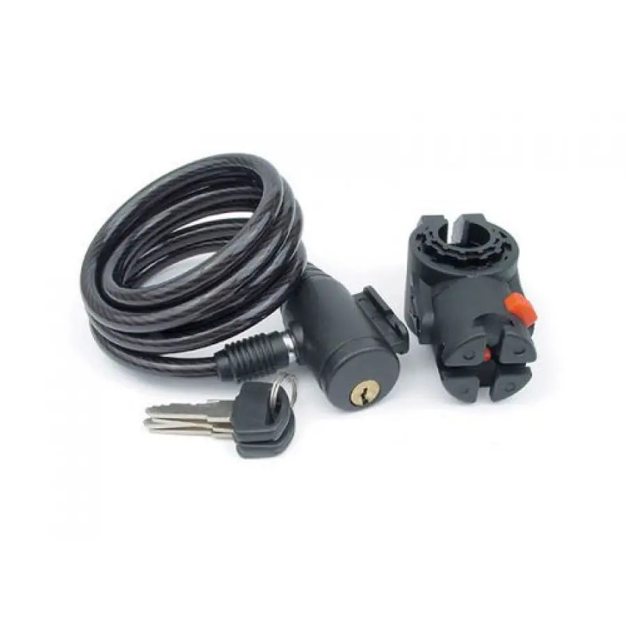 - Надежность и безопасность. Благодаря толщине стального троса 8 мм замок обеспечивает надежную защиту от попыток взлома и кражи.
