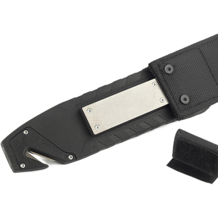 - Держите нож за рукоятку, обмотанную паракордом, для максимально надежного хвата.