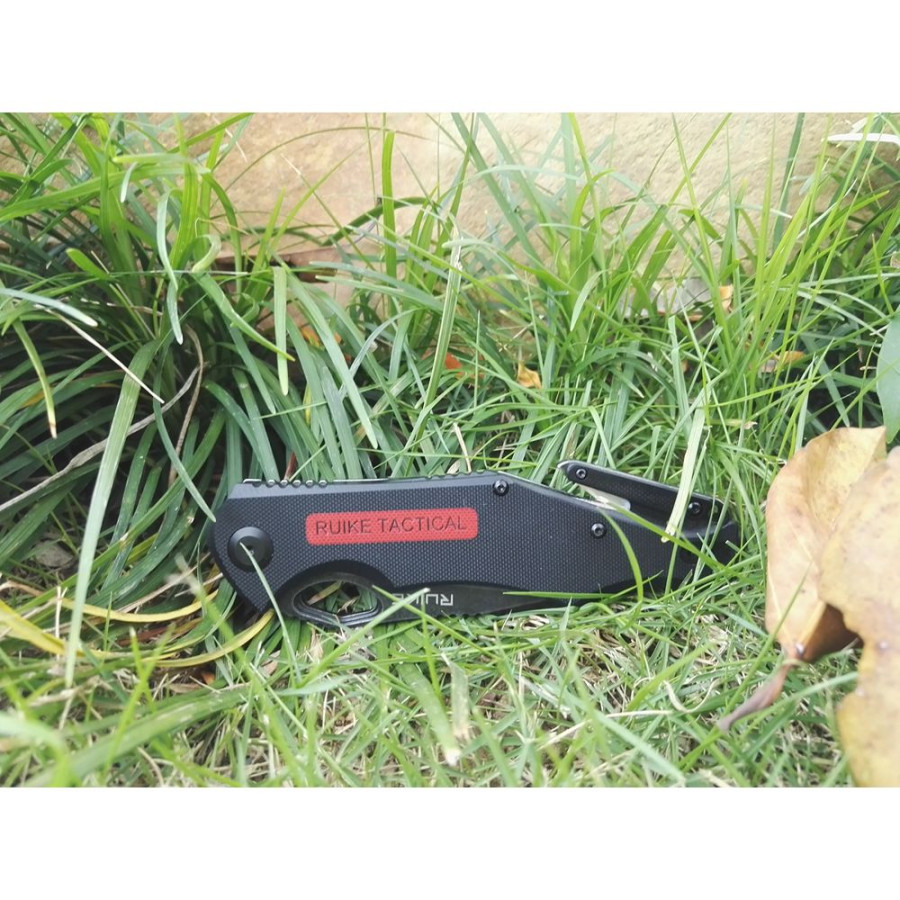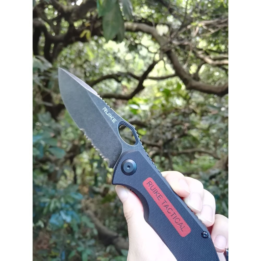 Модель Ruike M195 являє собою перший тактичний ніж виробника. Багатофункціональний складаний ніж, який характеризується кількома особливостями. По-перше, це симетричний клинок різновиди drop point, зроблений із сталі марки D2 твердістю порядку 60-61 одиниць по Роквеллу. Метод обробки леза – галтування. D2 це високовуглецева высокохромистая інструментальна сталь, забезпечує утримання кромки і твердість, а також більш стійка до корозії, ніж інші високовуглецеві сталі.