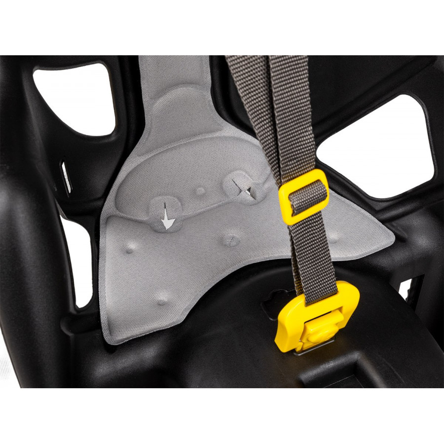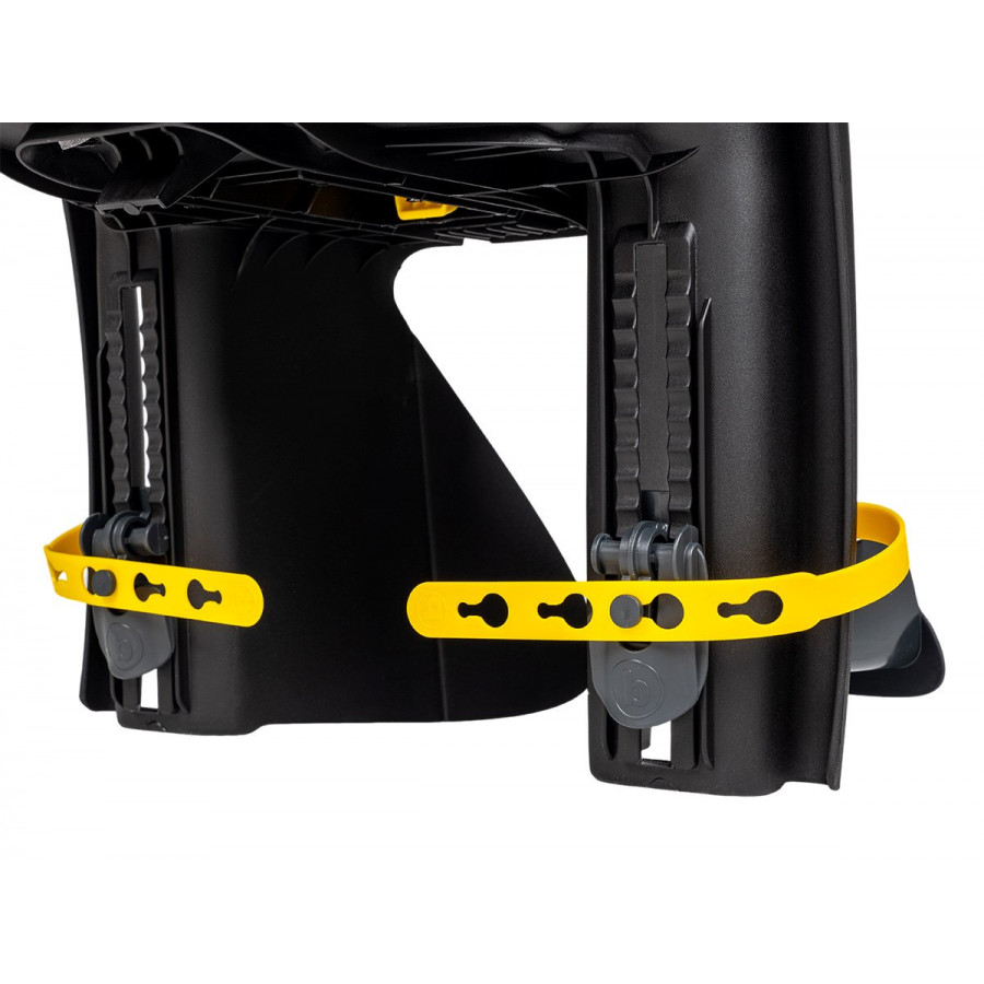 Кресло устанавливается на задний багажник шириной от 120 до 185 мм. Для дополнительной безопасности с креслом поставляется фиксирующий ремень, который крепится за подседельную трубу и предотвращает соскальзывание кресла с багажника.