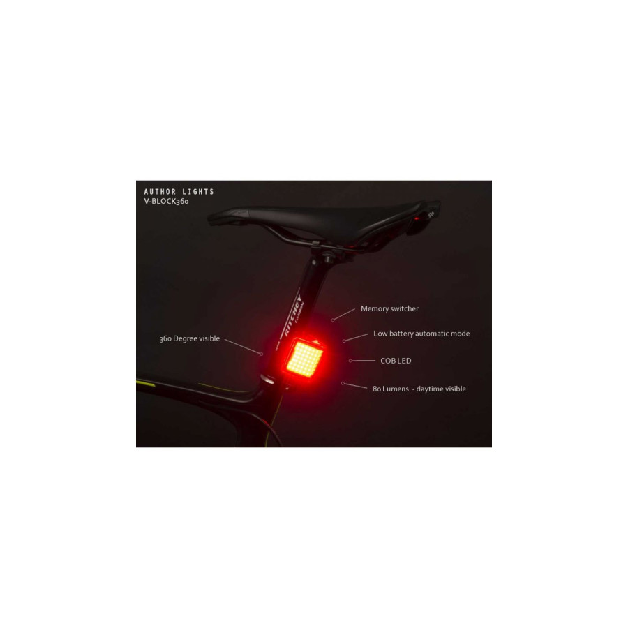 Ліхтар стоп задній Author V-Block360 USB CobLed 80 lm – надійне заднє світло для вашого велосипеда