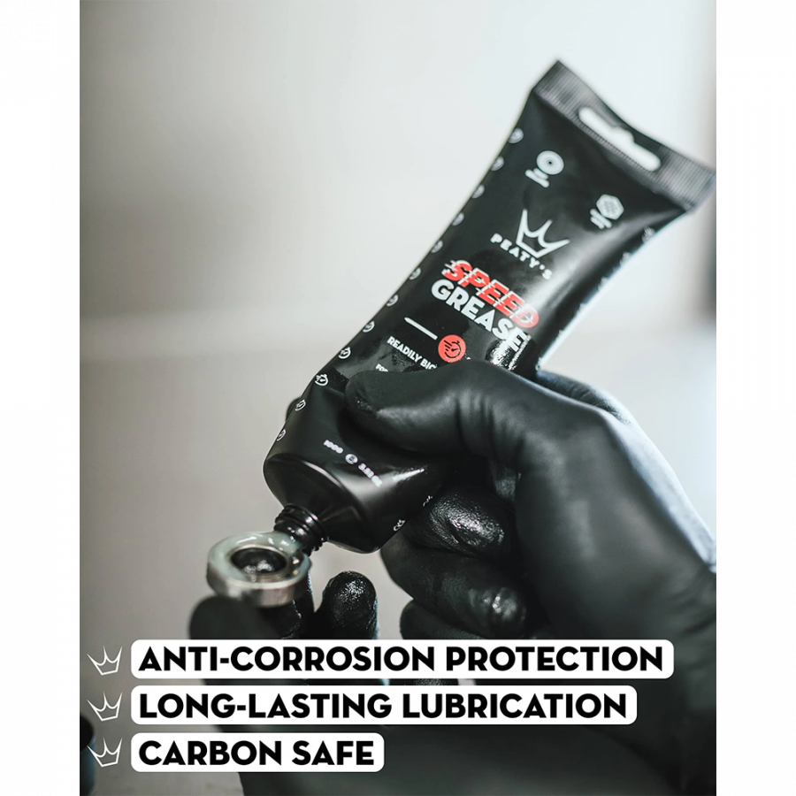 Peaty's Speed Grease – це спеціалізоване мастило, розроблене для забезпечення високоякісного догляду за підшипниками, барабанами та карбоновими деталями велосипеда. Воно гарантує плавну роботу механізмів, захищає від зносу та корозії, а також сприяє подовженню терміну служби комплектуючих.