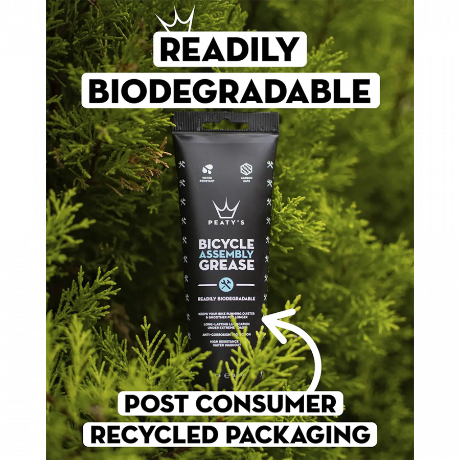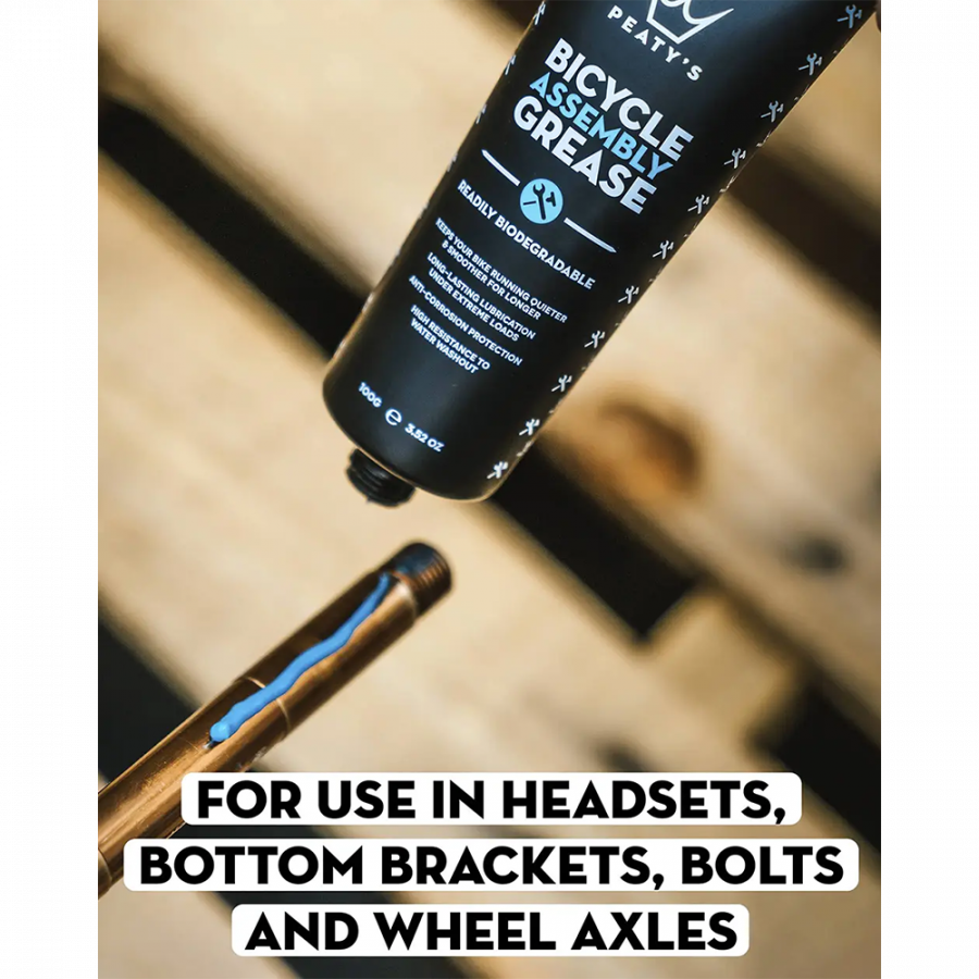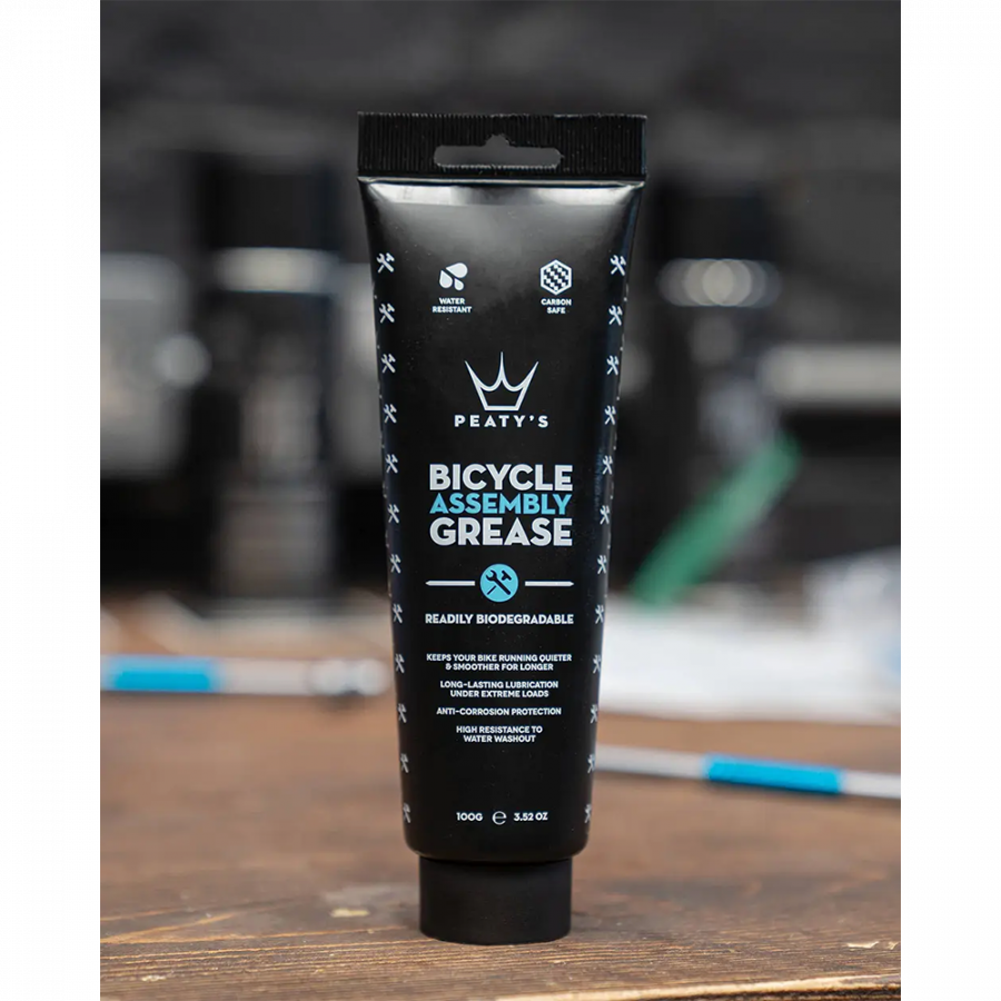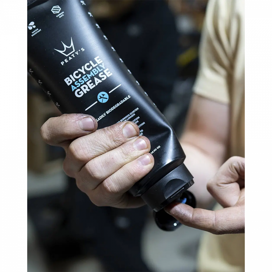 Peaty's Assembly Grease — це мастило, яке подовжує термін служби підшипників, захищає від корозії та забезпечує плавну роботу всіх рухомих частин велосипеда. Завдяки унікальній формулі, продукт не містить шкідливих речовин, безпечний для карбонового волокна та не викликає руйнування пластикових елементів.