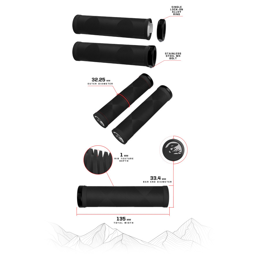 - Надійна фіксація: система Lock-On забезпечує міцне кріплення гріпсів на кермі, виключаючи їх прокручування навіть при інтенсивних навантаженнях.