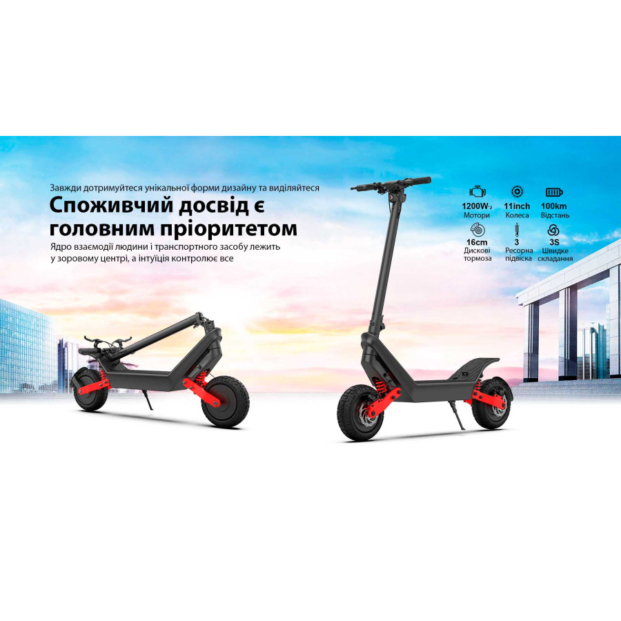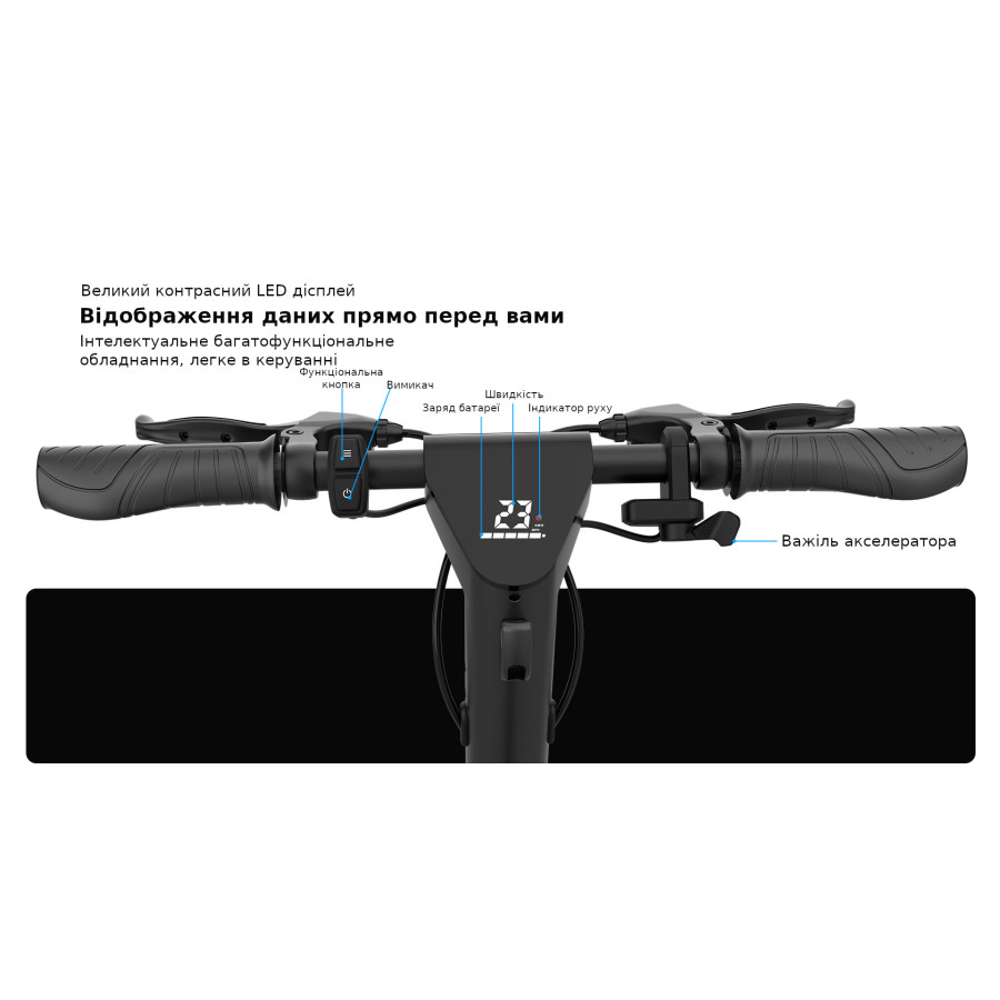 - Потужний двигун, що забезпечує швидкість до 25 км/год;
