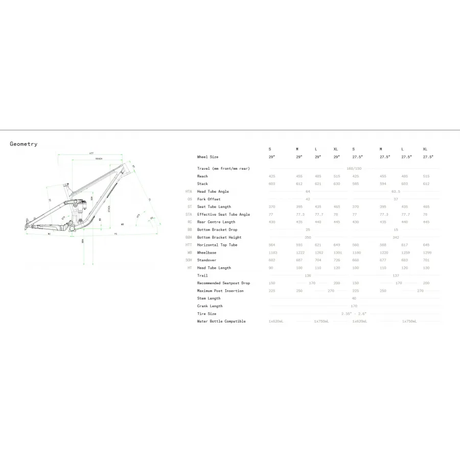 - Рама: Легка та міцна алюмінієва конструкція, розроблена спеціально для двопідвісів, з оптимізованою геометрією для максимального комфорту та ефективності.