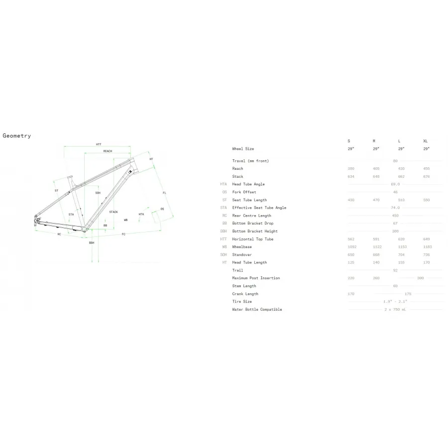 - Рама: алюмінієва, легка та міцна, оптимізована для хардтейлу;