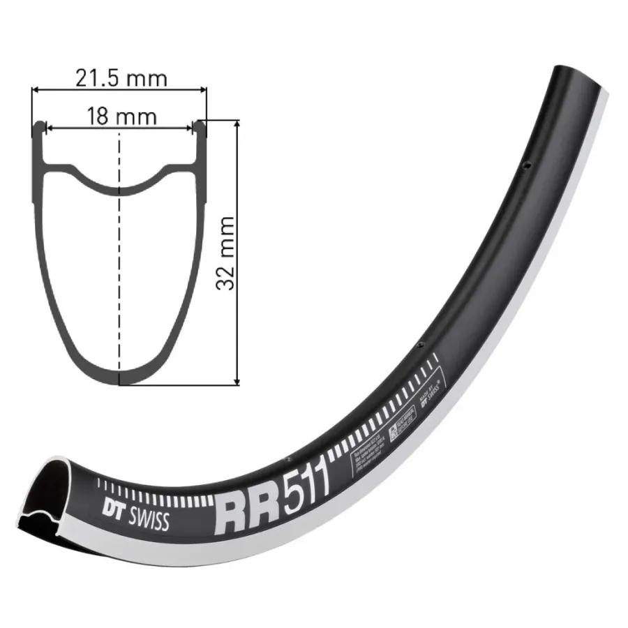 Основні характеристики обода DT SWISS RR 511 29x18 RIM BRAKE 32отв.