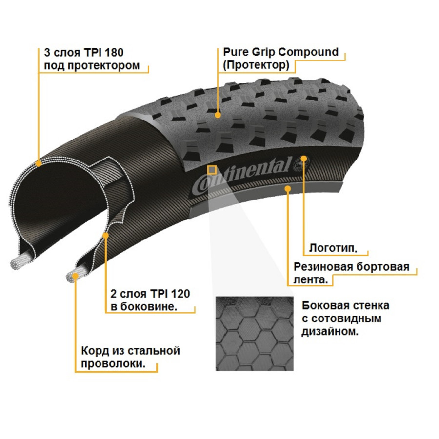 Окремо варто відзначити якість матеріалів та технології виготовлення. Покришка має TPI 3/180, що говорить про високу щільність плетіння ниток каркасу, що робить її більш міцною і стійкою до пошкоджень при збереженні гнучкості.