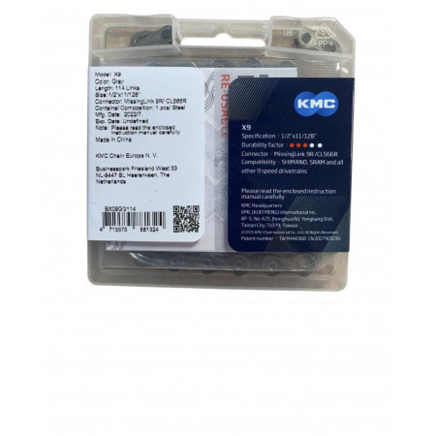 Ланцюг KMC X9 Gray 114 ланок з замком в боксі – надійність та якість для вашого велосипеда